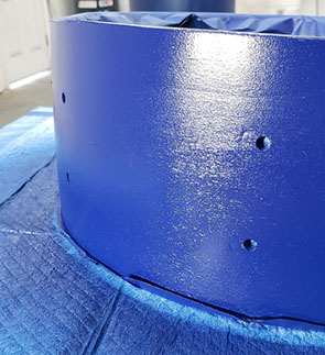 Lastly, for the shells, was painting. My mom, dad, and I taped off the shells, and gave them 5 coats of navy blue fast drying gloss paint. The shells sat for about 30 minutes in between coats, before finishing with one layer of clear coat to give it some extra gloss, and protect the paint.