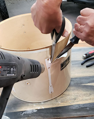 First, my mom and I took a heat gun to the wraps to soften them up, then used a putty knife to separate the wrap from the shell and a pair of scissors to cut them. They were very easy to cut, and we had all of the wraps removed from the shells in about 10 minutes.