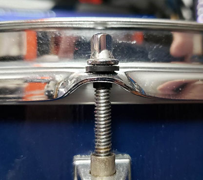 Next, I started cleaning the hardware: every lug, tension rod, spur, tom arm, tom bracket, claw, swivel nut, spring, wing nut, anything that wasn’t broken, I cleaned and reused, except the screws, bolts, nuts, and washers, those aren’t specialized drum hardware bits, so those I replaced, as buying them in bulk was incredibly inexpensive, and I was able to get them from a local fastener supply company.
